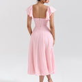 Couture-Emporium presents the Women's Midi Dress – Lace Fabric. Showcasing an off-shoulder design and a sweetheart neckline. This lace midi dress features an open back for added allure. Perfect for special occasions, this dress combines elegance and modern style.