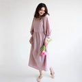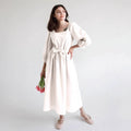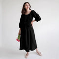 - Design: Loose Fit Midi Dress with Square Neck and Empire Waist