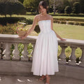 Elevate your style with Couture-Emporium's Women’s Midi Dress – Slim Fit Bodice, Square Neck, Spaghetti Straps and Flared Skirt. This sleek midi dress boasts a flattering slim fit bodice, chic square neckline, delicate spaghetti straps and a flowy flared skirt. Perfect for day or night, this dress offers effortless elegance.