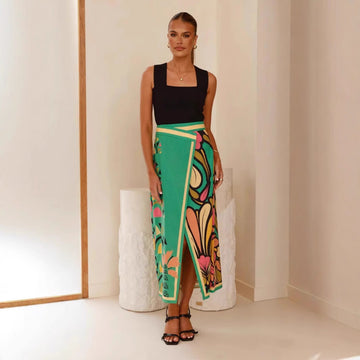 Elevate your style with the Women’s Midi Skirt – Slim Fit – Front Slit – Abstract Print – Elegant Draping by Couture-Emporium. This chic midi skirt features a flattering slim fit, an elegant front slit, and a stylish abstract print with refined draping, perfect for any occasion.