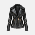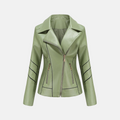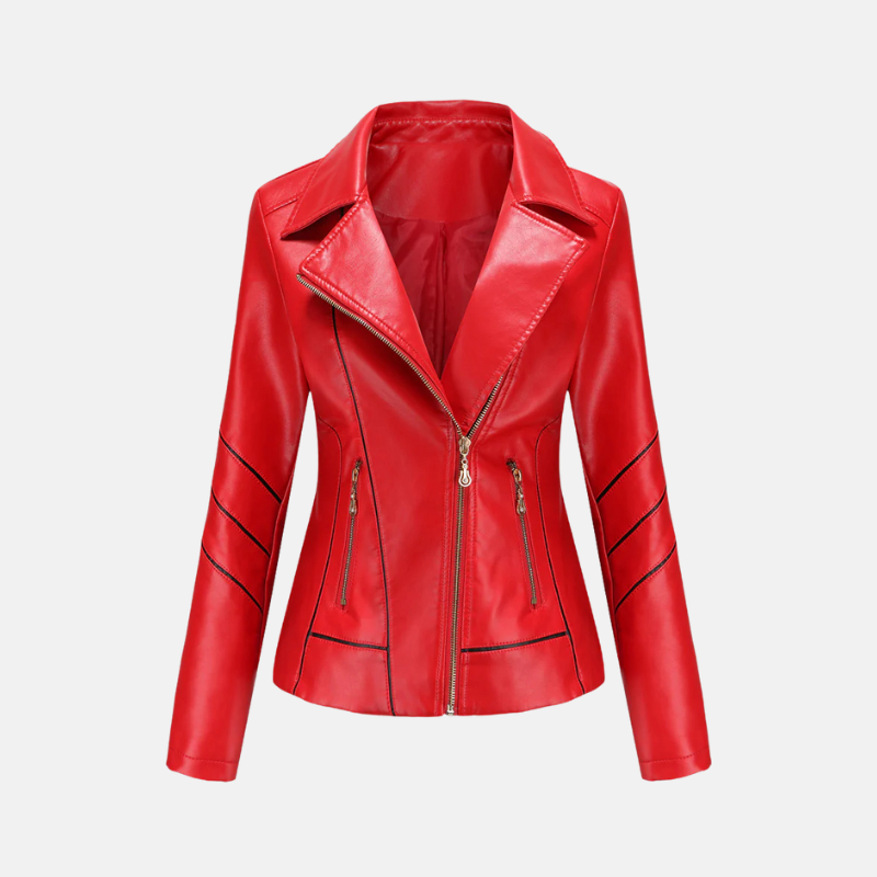 Slim Fit Faux Leather Motorcycle Jacket. Elevate your style with this edgy, cropped faux leather motorcycle jacket from Couture-Emporium. Featuring an asymmetrical zip and a flattering slim fit, this jacket is the perfect blend of fashion and function.