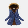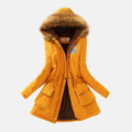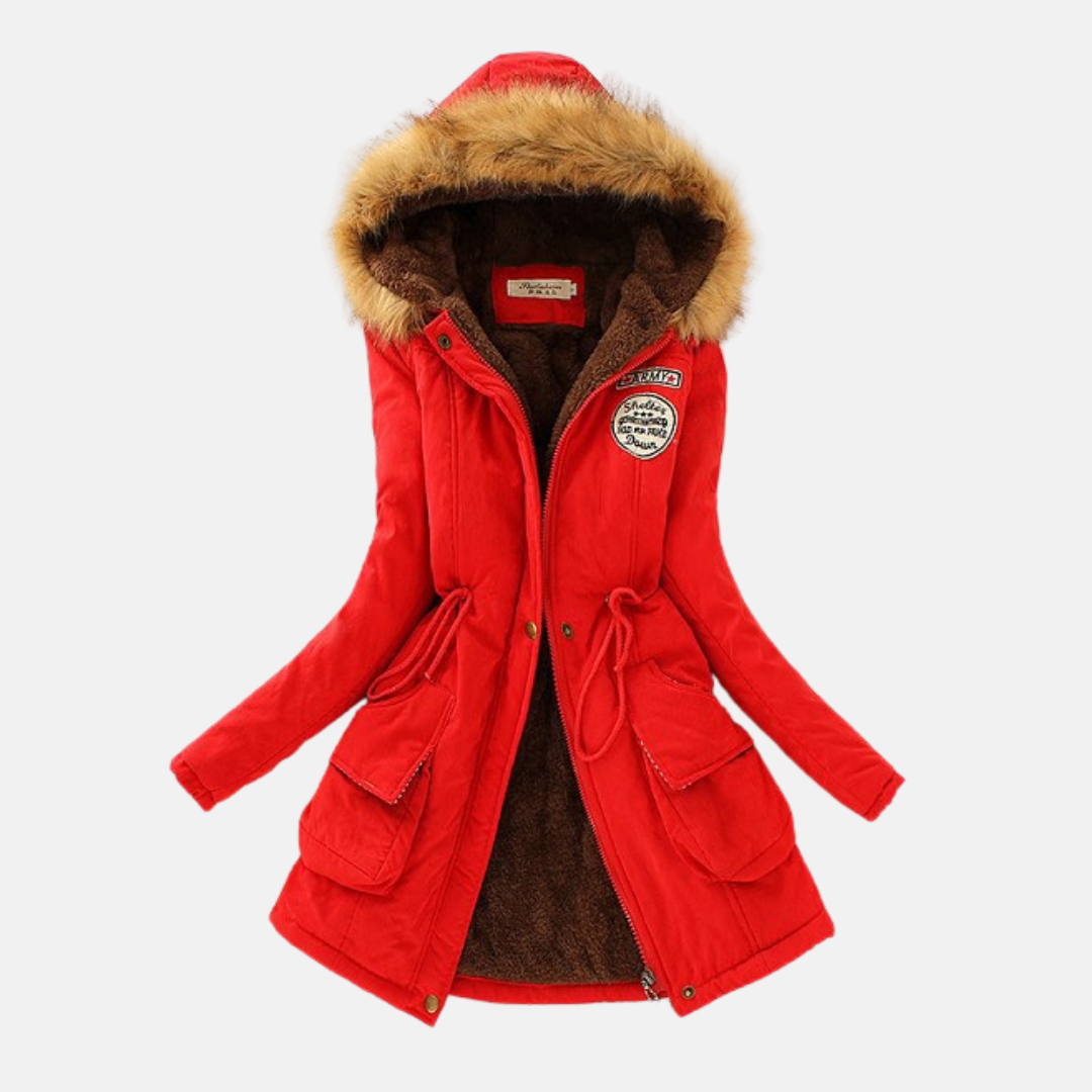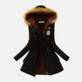 Stay warm and stylish with Couture-Emporium's Sherpa Lined Faux Fur Hood Parka Coat. This mid-thigh length parka features a soft sherpa lining, a faux fur trimmed hood, and a drawstring waist for a flattering fit. Perfect for cold weather, combining fashion and function.