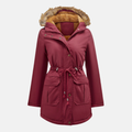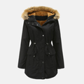 Fleece Lined Water-Resistant Parka Jacket. Brave the elements in style. This mid-thigh length parka features a cozy fleece lining, water-resistant outer shell, and a fashionable faux fur trimmed hood for ultimate warmth and protection.
