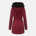 Stay warm and stylish this season with our Warm Lined Faux Fur Hood Parka Jacket. This longline parka features a cozy faux fur hood, adjustable waist for a flattering fit, and a warm lining to keep you comfortable in cold weather. Perfect for everyday wear!