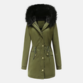 - Design: Longline Parka with Faux Fur Hood