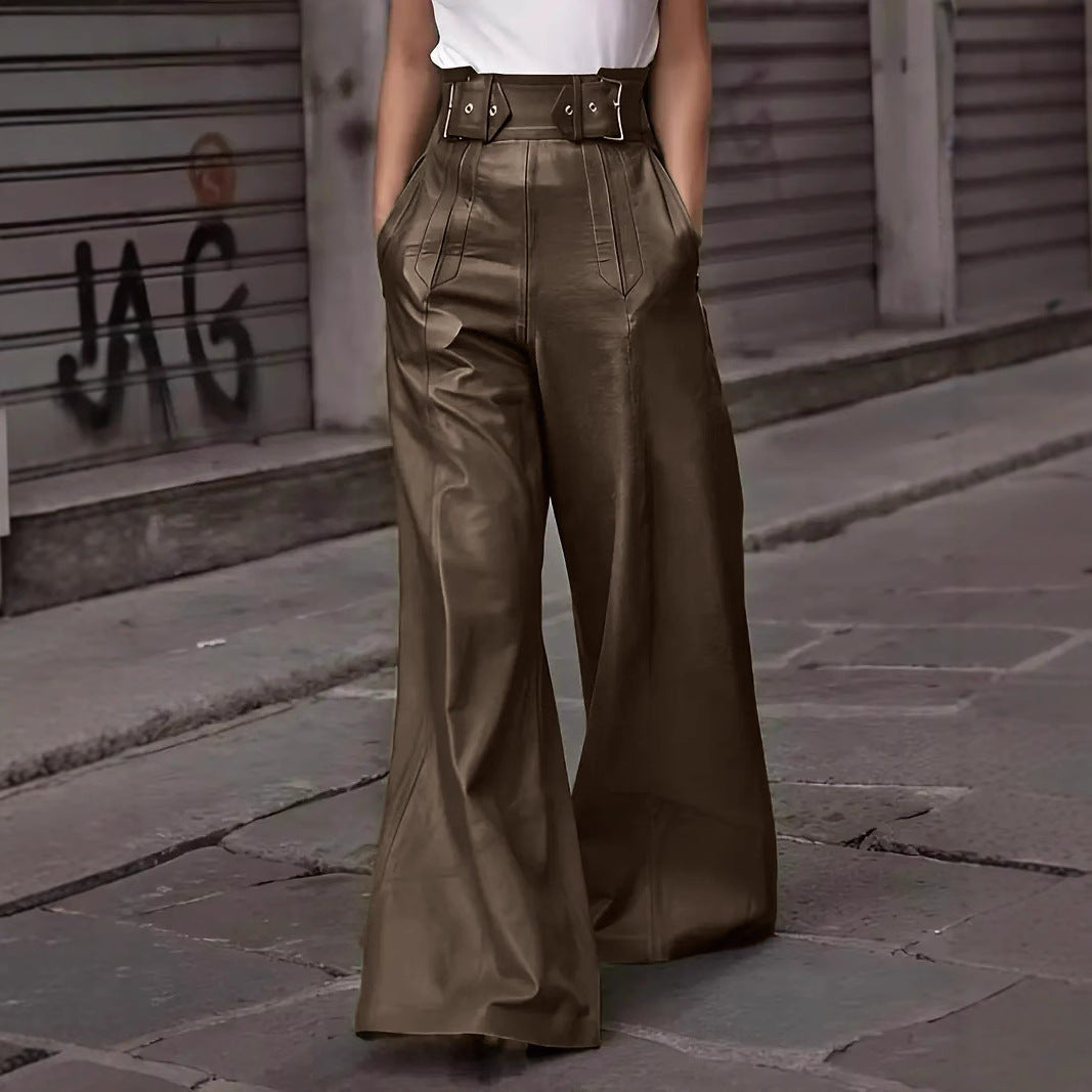 Couture-Emporium presents the ultimate statement piece: Women’s PU Leather Pants – High Waisted – Wide Leg – Belted – Side Pockets. These wide leg PU leather pants offer a sleek and stylish look with a flattering high waist, convenient side pockets, and a chic belted detail. Perfect for elevating your wardrobe.