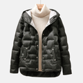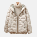 Embrace refined comfort with our Women’s Puffer Jacket. Crafted with a sophisticated woven shell and a relaxed fit, this jacket features an attached hood and snap button closure, offering timeless style and versatile warmth for any casual outing.