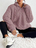 - Design: Relaxed fit pullover with cable knit texture and half zip