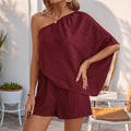 - Design: One-Shoulder, Textured, Relaxed Fit
