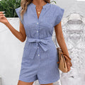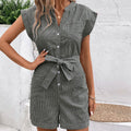 Pair this striped romper with sandals for a relaxed summer look, or dress it up with wedges and a statement necklace for a night out.