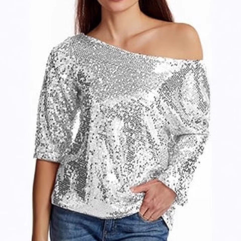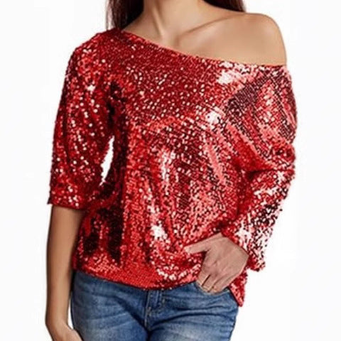 Shine at your next event with our Women’s Sequin Top – Off Shoulder – Mid Sleeve – Relaxed Fit – Party Wear from Couture-Emporium. This eye-catching top features shimmering sequins, a trendy off-shoulder design, and a comfortable relaxed fit, perfect for party and casual evening wear.