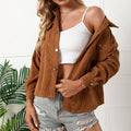Couture-Emporium's Corduroy Relaxed Fit Shirt Jacket: Embrace effortless style with this women’s corduroy shirt jacket. Featuring a relaxed fit, lapel collar, and chest pockets, this versatile piece combines comfort and chic design. Perfect for layering and adding a touch of texture to any outfit.