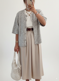 Add a charming layer to your outfit with this women's cardigan, designed for a soft and minimalistic aesthetic. Perfect for casual outings or light layering, it features a button-down closure and short sleeves for a relaxed, versatile style. The ribbed knit texture adds subtle detail, while the cropped length makes it ideal for pairing with high-waisted jeans or skirts. This feminine cardigan is a must-have for creating effortlessly chic, everyday looks.