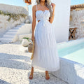 - Design: High-Waisted Maxi Dress with Boho Cut-Outs and Spaghetti Straps