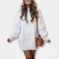 Pair this sweater dress with chunky boots for an edgy vibe or dress it up with tights and heels for a night out.