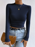 Stay stylish and comfortable with the Waffle Knit Slim Fit Cropped Sweatshirt from Couture-Emporium. This long-sleeve, high-neck sweatshirt features a flattering slim fit and a trendy cropped length. The waffle knit texture adds a touch of sophistication, perfect for elevating your casual wardrobe.