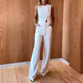 Women's Two-Piece Set – Fitted Crop Top with Zipper – High Waist Wide-Leg Pants by Couture-Emporium offers a chic and modern look. This stylish set features a sleeveless, fitted crop top with a contemporary zipper detail and high-waist, wide-leg pants for a flattering silhouette and comfortable wear. Perfect for casual outings or semi-formal events, this ensemble provides a coordinated and effortlessly fashionable outfit.
