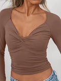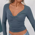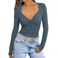 Elevate your wardrobe with our Women’s V-Neck T-Shirt – Slim Fit – Long Sleeve – Cropped Twist Front. This stylish and flattering long-sleeve tee features a deep V-neck and unique twist front detail. The slim fit and cropped length create a modern silhouette, perfect for casual outings or dressing up for an evening event. Breathable and comfortable, it's a must-have staple!