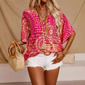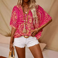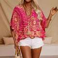 Effortlessly stylish, this Women’s V-Neck Top – Relaxed Fit – Batwing Sleeves – Lightweight Boho Print from Couture-Emporium features a flattering V-neck and breezy batwing sleeves. A relaxed fit and vibrant boho print make it perfect for casual comfort and chic style.