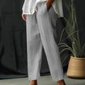 Discover ultimate comfort and style with our Women’s Wide-Leg Pants – Cotton Linen – Relaxed Fit – Striped – Drawstring Waist by Couture-Emporium. These striped, relaxed-fit pants in a breathable material blend with a drawstring offer an effortlessly chic look. Perfect for casual outings or relaxed days.