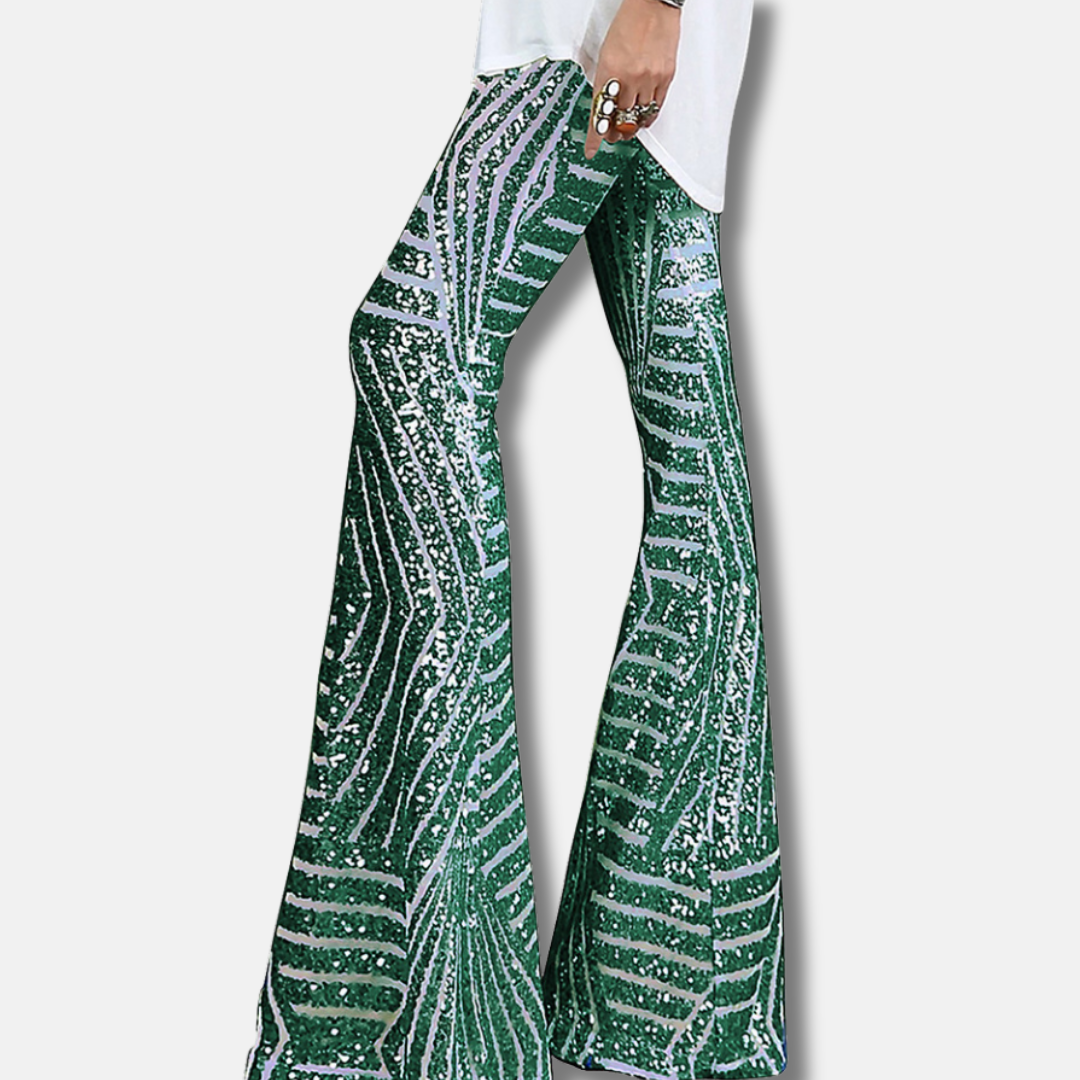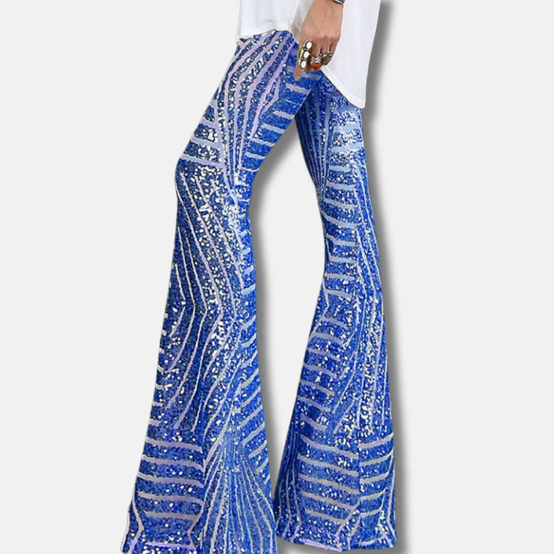 - Design: High Waist, Wide Leg, Sequin Embellishment