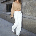 Pair them with a fitted top and sandals for a relaxed daytime look, or dress them up with a blouse and heels for a chic evening ensemble.