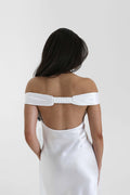 - Wear your hair in an elegant updo to highlight the off-shoulder design.