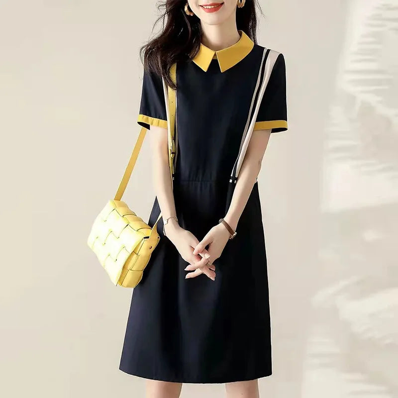 Why Choose the Women's Midi Dress with Peter Pan Collar and Short Sleeves?