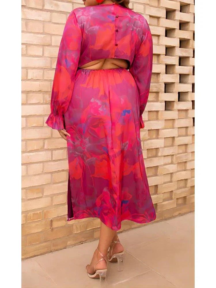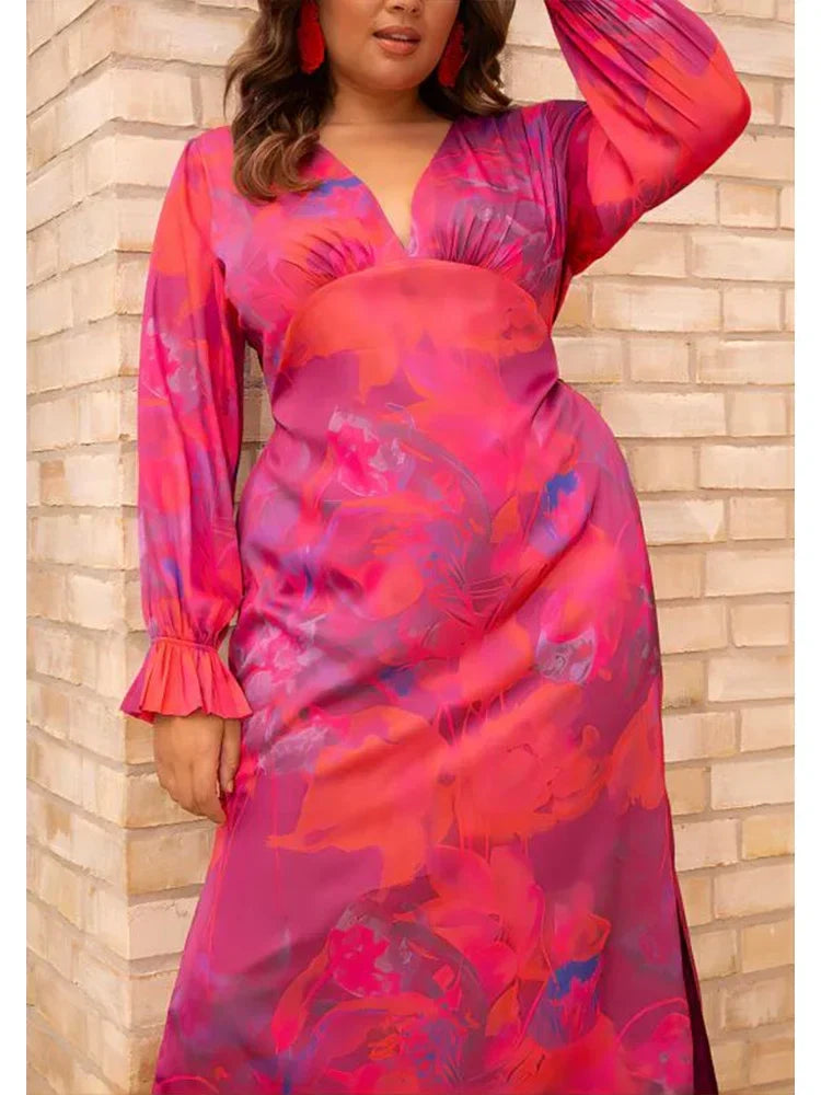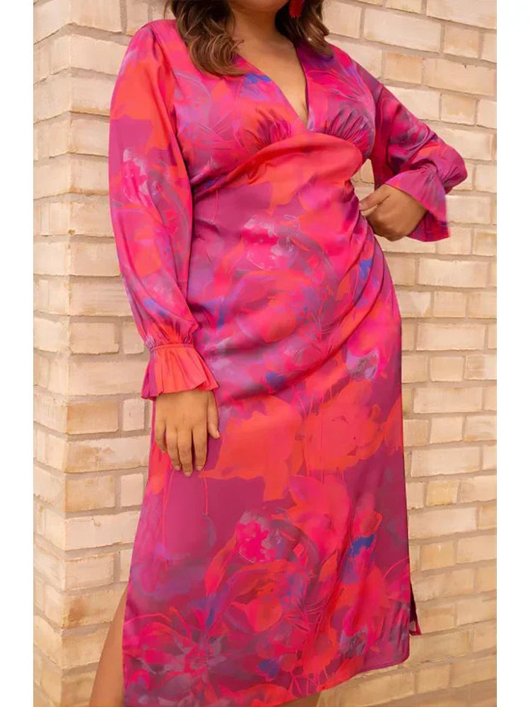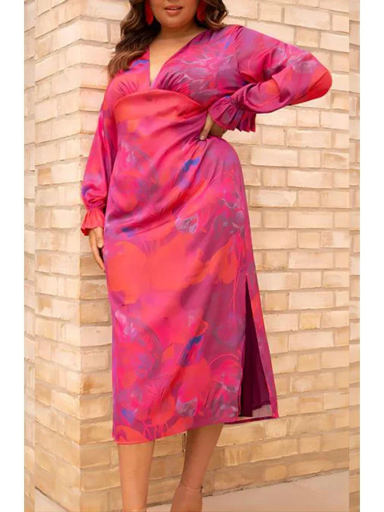 Couture-Emporium's Women's Midi Dress - V-Neck Flowy Fit - Long Puff Sleeves - Floral Print Elegant Style is your new go-to for effortless elegance. This midi dress features a flattering V-neck, long puff sleeves, and a vibrant floral print. The flowy fit and side slit offer both comfort and style, perfect for any occasion.
